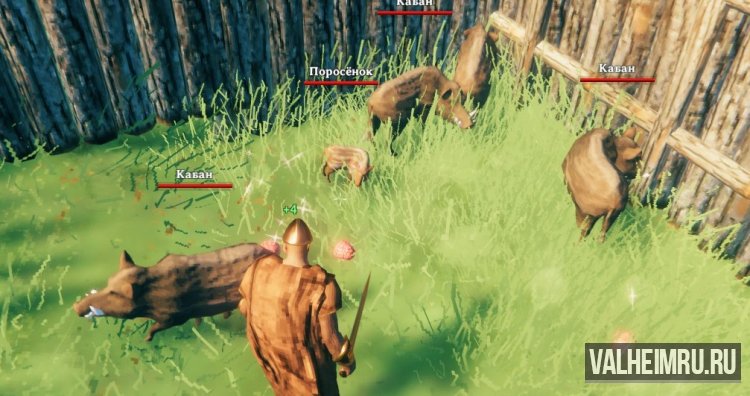 Самый простой способ привести кабана в загон — спровоцировать его на бой. Заманите существо в загон, киньте прикормку и быстро удалитесь из загона, закрыв за собой вход. Для дальнейшего кормления не обязательно открывать загон, можно кидать еду прямо через забор.